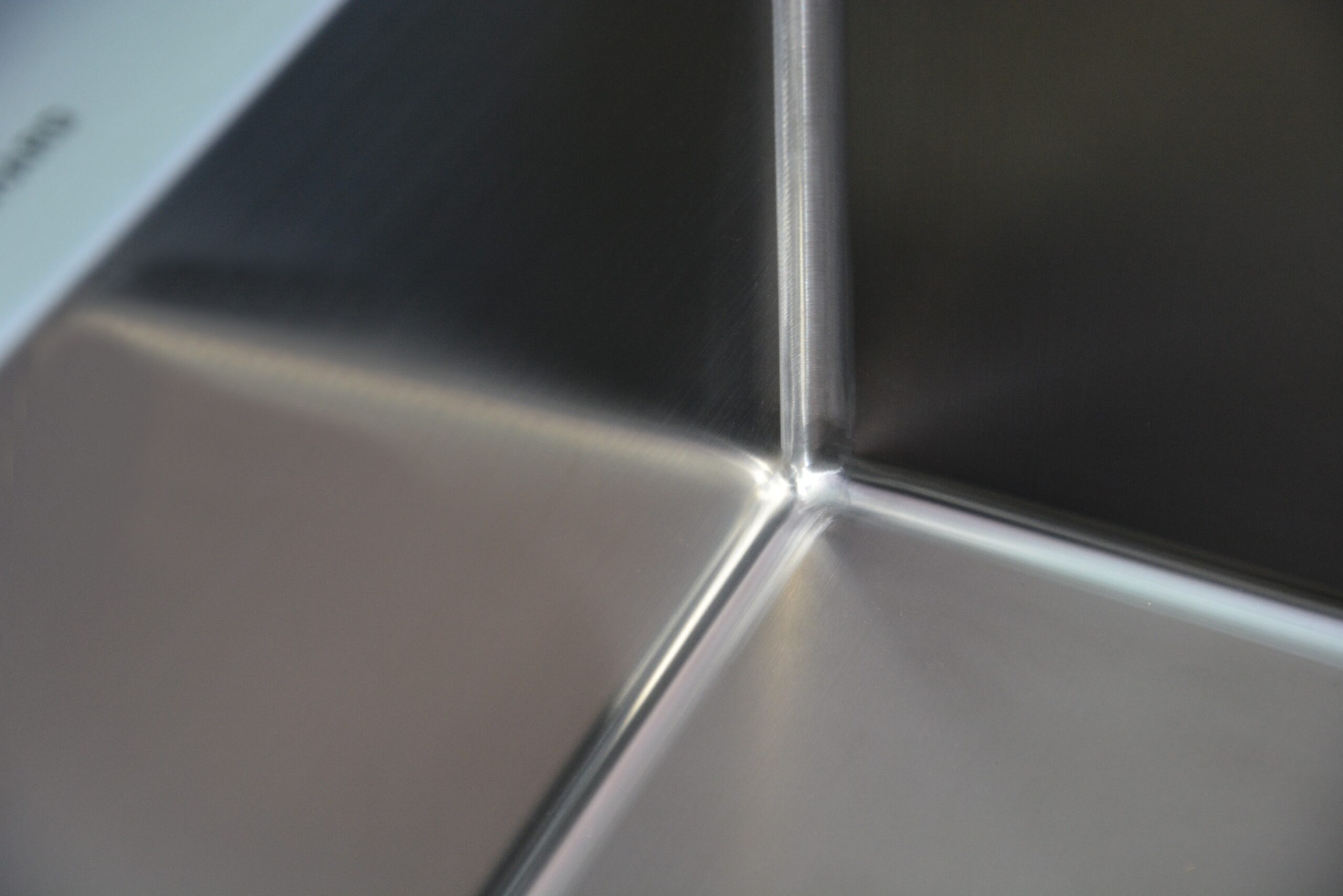 Becken außen: Schweißnaht senkrecht geschliffen, Fläche ungeschliffen
