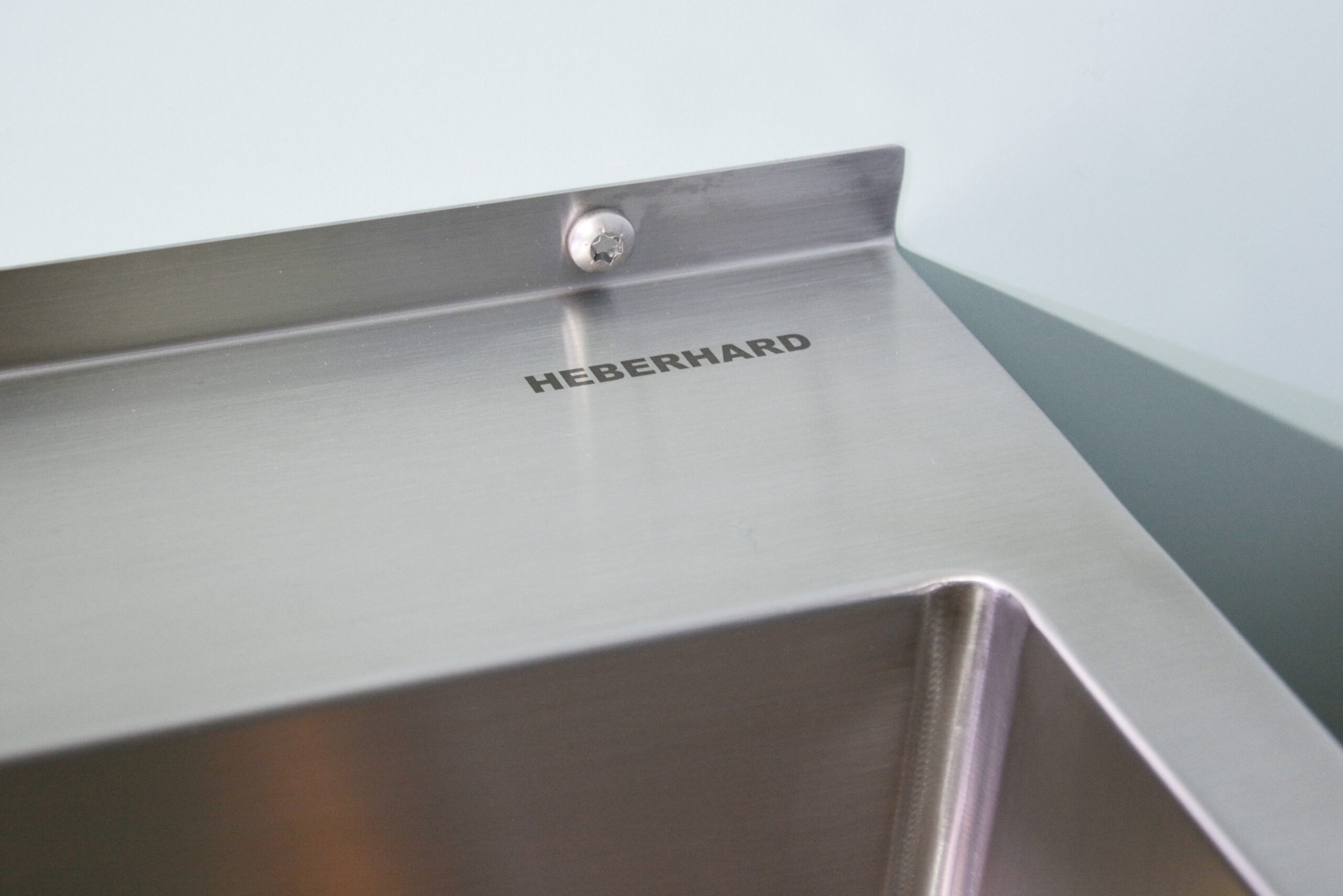Edelstahl Ausgussbecken Solid 560 Ablaufsieb-oÜL-Hahnbank-Rückwand